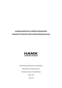 Opinnäytetyössä selvitettiin alakouluikäisten terveyteen ja perheiden hyvinvointiin liittyviä tekijöitä sekä lasten terveystottumuksia. Opinnäytetyössä kuvattiin kouluterveydenhuoltoa säätelevää lainsäädäntöä ja kouluterveydenhuollon keskeisiä tehtäviä. Lisäksi tarkasteltiin kouluterveydenhuollon asiakkuutta perheen näkökulmasta sekä moniammatillista yhteistyötä kouluterveydenhuollossa. Tutkimuksellisen opinnäytetyön tutkimusmenetelmänä käytettiin sisällönanalyysiä, jonka avulla analysoitiin asiakastyytyväisyyskyselystä kerätyt avoimet vastaukset.