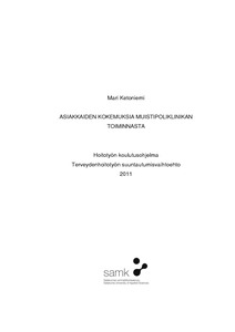 Tämän opinnäytetyön tarkoituksena oli selvittää Rauman sosiaali- ja terveysviraston muistipoliklinikan asiakkaiden kokemuksia muistipoliklinikan toiminnasta. Tarkoituksena oli myös selvittää, miten muistipoliklinikan asiakkaat mahdollisesti haluaisivat kehittää tai muuttaa saamiaan palveluita. Opinnäytetyön tavoitteena oli tuottaa tietoa, jota voidaan hyödyntää Rauman kaupungin terveyskeskussairaalan muistipoliklinikalla toiminnan kehittämiseksi vastaamaan asiakkaiden tarpeita entistä paremmin.