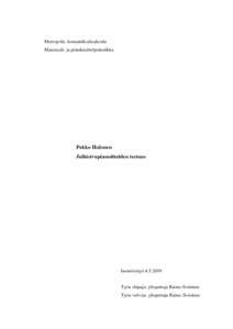 Tämän insinöörityön tehtävänä oli arvioida erilaisten puu- ja kiviainespintojen pinnoitteita. Testaukset suoritettiin Metropolia Ammattikorkeakoulussa käytettävän julkisivupinnoitteiden testausjärjestelmän mukaan, mitä Timo Salesto oli omassa insinöörityössään kehittänyt edelleen. Julkisivupinnoitteiden tutkimisen ja testaamisen lisäksi työssä tutkittiin Saleston testikappaleita, jotka olivat olleet koulun sääasemalla pitkäaikaisrasituksessa.