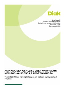 Opinnäytetyö toteutettiin kehittämishankkeena, jonka tavoitteena oli edistää asiakkaiden osallisuutta sosiaalisessa raportoinnissa. Hanke toteutettiin Helsingin kaupungin matalan kynnyksen palveluissa vuoden 2019 aikana. Tarkoituksena oli löytää toimivia käytäntöjä asiakkaiden ja ammattilaisten yhteisen sosiaalisen raportin tuottamiseen.
