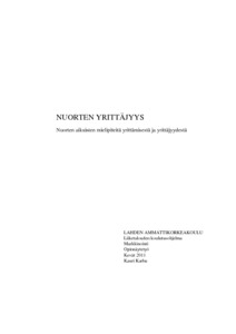 Tämä opinnäytetyön tarkoituksena on selvittää, millainen on nuorien yrittäjien ja nuorten yrittäjyysasenteiden tila Suomessa, sekä tutkia millaisia näkemyksiä Lahden ammattikorkeakoulussa opiskelevilla ja opiskelleilla nuorilla aikuisilla on yrittäjyydestä.