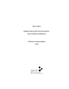 Jatkossa olisi hyvä selvittää, onko oppaasta ollut käytännön hyötyä päiväkotien henkilökunnalle sekä opiskelijoille. Opasta voisi tulevaisuudessa kehittää eteenpäin niin, että se kattaisi esimerkiksi alakoulun ja aamu- ja iltapäiväkerhotoiminnan. The purpose of this thesis was to produce a guidebook for personnel about type 1 diabetic child in day care. The guidebook was based on the latest evidence-based knowledge about type 1 diabetes and diabetic child in day care. The aim of this thesis was to strengthen the knowledge of the personnel in the day care so that the personnel would feel confident while taking care of the diabetic child. Therefore, the parents would feel safer to leave their child to the day care. The aim of the thesis worker was to became competent in project managing and in making of the written instruction and deepen the knowledge and guidance of the type 1 diabetes. The guidebook was made for nursery schools in the city of Laitila.
