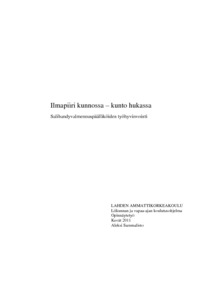 Opinnäytetyöni tarkoituksena oli kartoittaa salibandyn parissa toimivien valmen-nuspäälliköiden työhyvinvointia. Tutkimuksessa selvitettiin valmennuspäälliköiden työnkuvaa, fyysistä, henkistä, sosiaalista ja ammatillista hyvinvointia sekä tasa-arvoa ja esimiestyön sujuvuutta.