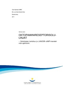 Tämän opinnäytetyön tarkoituksena oli oppiaineen laboratoriossa kehitettyjen oktopamiinireseptorisolulinjojen ominaisuuksien kartoitus ja cAMP-määritysmenetelmän optimiolosuhteiden mää¬rittely. Oktopamiinireseptorien geenit oli transfektoitu CHO-soluihin, jotka oli täten saatu ilmentämään viittä eri oktopamiinireseptoria, alatyyppejä R0, R1, R2, R3 ja R4. Reseptorigeenit oli eristetty merirokosta (Balanus improvisus), joka on meressä elävä niveljalkainen eläin. Jokaisesta oktopamiinireseptoria ilmentävästä solulinjasta oli valmistettu kolme rinnakkaista linjaa. Lisäksi oli samalla tavalla valmistettu solulinjat, jotka tuottivat fuusioproteiineja, joissa reseptoriin oli liitetty fluoresoiva merkkiaine, GFP-peptidi.