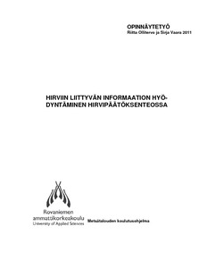 Työntilaaja oli Metsäntutkimuslaitos, Rovaniemen tutkimusyksikkö. Opinnäytetyömme tarkoituksena oli kartoittaa tietoa hirviin liittyvän informaation hyödyntämisestä hirvipäätöksenteossa. Samalla selvitimme, millainen tieto on hirvipäätöksentekijöille eniten hyödyksi. Työmme tavoitteena oli saada kyselytutkimuksesta kattavasti vastauksia kaikista vastaajaryhmistä, jolloin tuloksista tulee mahdollisimman luotettavia. Hirvikannasta kertovaa informaatiota on eri toimijoiden hallussa, ja opinnäytetyössämme tutkimme näiden informaatioiden hyödyllisyyttä, luotettavuutta ja yhdistämistä hirvipäätöksenteon helpottamiseksi.