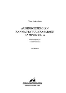 Tässä työssä tarkasteltiin eri aurinkoenergian hyödyntämismuotojen kannattavuutta Mikkelin Ammatti-korkeakoulun Kasarmin Kampuksella, koska tulevaisuudessa tulee energian hinta nousemaan ja sitä myöten rakennusten käyttökustannukset kasvavat. Aurinkoenergiaa voidaan hyödyntää sähkönä, lämpönä tai uusimpana jäähdytyksenä. Aurinkoenergian taloudellista kannattavuutta arvioitiin annuiteettimenetelmällä.