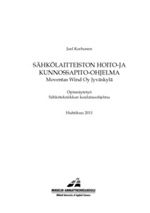 Opinnäytetyöni tavoitteena oli luoda sähköturvallisuuslain edellyttämä sähkölaitteiston hoito- ja kunnossapito-ohjelma Moventas Wind Oy:n Ikolan tehtaalle Jyväskylään.