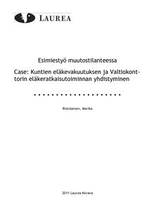 Esimietyö muutostilanteessa : Case: Kuntien eläkevakuutuksen ja Valtiokonttorin eläkeratkaisutoiminnan yhdistyminen