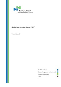 The manual consists of 5 chapters. These include the teaching process of learning new skills, mental coaching of an athlete, sport specific skills of an ice hockey goalie, the demands of game situations for an ice hockey goalie and the everyday actions with a goalie in the team environment. Every chapter is divided into subcategories.