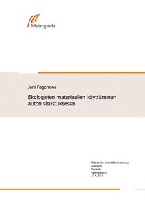 Opinnäytteeni aiheena oli tutkia eri kuitumateriaalien mahdollisuuksia toimia ekologisina tekstiilimateriaaleina Metropolian kestävän kehityksen kaupunkiautoprojektissa. Projektilla oli myös ulkopuolinen salassa pidettävä tilaaja. Työssäni kuitumateriaaleja vertailtiin ekologisten vaatimusten ja auton sisustamisen vaatimusten pohjalta.