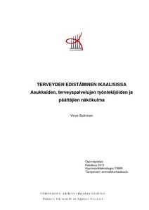 Terveyden edistäminen on ajankohtaista monella tavoin. Tämä tutkimus käsittelee terveyden edistämisen käsityksiä Ikaalisissa. Tutkimuksessa lähestytään aihetta monesta eri näkökulmasta BIKVA- mallia soveltaen. Tutkimuksessa selvitetään Ikaalisten kaupungin asukkaiden, avoterveydenhuollon työntekijöiden ja esimiehen sekä kaupungin päättäjien käsityksiä terveyden edistämisen tilasta Ikaalisissa. Tutkimustehtävänä on sel-vittää millaiset asiat vaikuttavat terveyteen ja millaisia palveluita tarvitaan tulevaisuudessa, jotta edistetään parhaalla mahdollisella tavalla terveyttä. Tutkimuksen yhtenä tavoitteena on myös osallistaa eri osallistujatahot terveyden edistämistyöhön.
