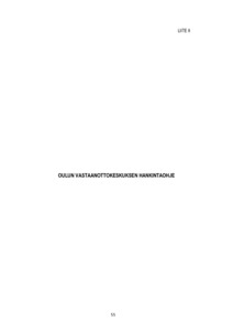 Opinnäytetyö on toiminnallinen opinnäytetyö, jonka tavoitteena oli tehdä Oulun vastaanottokes-kukselle oma hankintaohje. Hankintaohjeen tulee olla helppolukuinen, ymmärrettävä ja sen tulee antaa käytännön ohjeet siitä, miten hankinnat tulisi suorittaa. Tutkimusongelmana on se, voidaanko hankintatoimea yleensä keskittää toiminnan luonteesta johtuen.