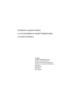 Tämä opinnäytetyö toteutettiin kehittämishankkeena Avainsäätiössä, joka on sosiaalipalveluja tuottava organisaatio. Hanke kohdistui työhönvalmennuspalvelujen laadun kuvaamiseen ja kehittämiseen. Hankkeen tarkoituksena oli lisätä asiakastyytyväisyyttä ja kuvata työhönvalmennuksen keskeisiä toimintoja ja prosesseja. Tarkoituksena oli korkean ja tasaisen laadun varmistaminen. Kehittämishankkeen tavoitteena oli käynnistää systemaattinen laadun kehittäminen sekä auttaa henkilöstöä ymmärtämään laadun merkitys ja tärkeys omassa työssään. Tavoitteena oli tuottaa työhönvalmennuksen laatukäsikirja.