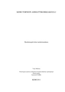 Opinnäytetyö liittyy Kajaanissa toimivan koulutus- ja konsulttialan yrityksen, Koulu-tusAvain Oy:n teknisen alan koulutuspalveluiden tuotteistamiseen. Opinnäytetyön tarkoituksena oli määrittää koulutuspalvelun tuotteistamiseen liittyvät keskeiset kriteerit sekä nopea ja kustannustehokas tapa laatia ja monistaa koulutustuote. Työn tavoitteena oli myös tutkia asiantuntija- ja tuotepalveluiden suunnitteluun ja tuotteistamiseen liitty-viä tekijöitä sekä määrittää niiden avulla koulutuspalvelujen tuotteistamisprosessi aikuiskoulutukseen.