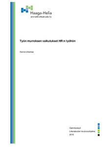 Opinnäytetyössä tutustutaan työn murroksen aiheuttamiin muutoksiin ja niiden vaikutuksiin HR:n rooliin, vastuisiin ja osaamistarpeisiin organisaatiossa.