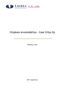 Opinnäytetyön tarkoituksena oli selvittää case-yrityksen arvo. Tutkimuksen kohteena oli Helsingin keskustassa toimiva pieni askartelun ja pienoismallien erikoisliike. Omistajien pyynnöstä yrityksen nimeä ei mainita opinnäytetyössä.