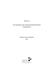 Tämän opinnäytetyön aiheena oli suunnitella ja toteuttaa joka toinen vuosi järjestettävät valtakunnalliset sairaalakirjastopäivät. Tapahtuma järjestettiin 15.-16. Huhtikuuta 2010. Tämä oli ensimmäinen kerta kun tapahtuma pidettiin Porissa. Tapahtuman tilaaja oli Bibliotecharii Medicinae Fenniae Ry. Järjestämisestä vastasi Satakunnan sairaanhoitopiirin kuntayhtymän tieteellinen kirjasto. Tapahtumapaikkana toimi Satakunnan keskussairaalan auditorio. Tapahtuman teemana oli ”Kirjasto – terapiaa, tietoa, tutkimusta”, ja molemmille päiville oli varattu aiheeseen liittyviä luentoja. Ensimmäisen päivän illalle oli lisäksi suunniteltu vapaampaa ohjelmaa.