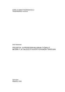 Tämän opinnäytetyön tavoitteena oli löytää Meidän IT talous Oy:n kehitysyksikön tarpeisiin mahdollisimman hyvin soveltuva projektin- ja prosessinhallinnan työkalu. Valituksi tulleen työkalun pitää antaa mahdollisimman hyvä kokonaiskuva meneillään olevista projekteista, tukea kehitysyksikön työntekijöitä tehtävien suunnittelussa ja työmäärä-arvioinneissa.