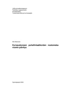 Tämän opinnäytetyön tarkoituksena oli päivittää sellutehtaan kuivauskoneen puhallinlaatikoiden nostomekanismi miettimällä kehityskeinoja nykyiselle toiminnassa olevalle mekanismille ja kehittelemällä sille uusi vaihtoehtoinen ratkaisu. Nykyinen nostomekanismi ei sovellu käyttövarmuudeltaan, toiminnaltaan eikä työturvallisuudeltaan sellutehtaan tiiviisiin aikatauluihin, aiheuttaen turhia miestyötunteja, tuotantokatkojen pitkittymisiä, tuotannon tappioita sekä työturvallisuusriskejä.