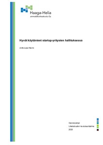 Startupien hallitustyötä ja sen merkitystä yrityksille on tutkittu verrattain vähän Suomessa. Hyvällä ja osaavalla hallituksella ja hallitustyöllä voi olla suurikin merkitys yrityksen menestykseen. Startupeissa ollaan usein jonkun uuden äärellä, eri kasvuvaiheissa ja asiat saattavat muuttua nopealla syklillä. Tämän opinnäytetyön tarkoitus on selvittää hyviä käytänteitä startup-yritysten hallituksissa ja hallitustyöskentelyssä. Tutkimuksen tavoitteena on selvittää, mistä hyvä hallitus ja hyvä hallitustyö koostuu ja mitä siinä tulisi huomioida. Tutkimuksessa hahmotellaan käytänteitä, jotka vaikuttavat yritysten hallitustyöskentelyyn. Lisäksi tutkimuksen yhtenä tavoitteena on pohtia, miten startupien hallitustyötä voisi kehittää. Tutkimus on rajattu koskemaan vain suomalaisia startup-yrityksiä.