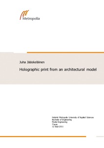 Insinöörityön aiheena on tapaustutkimus holografisen filmitulosteen tilaamisesta ja käyttämisestä. Senaatti-kiinteistöt Oy ja Pöyry Oy käynnistivät keväällä 2011 yhteishankkeen, jossa eräästä arkkitehtimallista haluttiin tehdä hologrammi. Nykyaikainen hologrammi on erikoisvalmisteinen filmilevy, jonka ylä- ja alapuolelle muodostuu noin 25 cm korkea illuusio, kun se valaistaan yläpuolelta. Katseluun ei tarvitse tietotekniikkaa tai erikoislaseja.