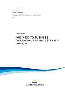Opinnäytetyön tarkoituksena on löytää Business to Business -verkkokaupankäynnin menestystekijöitä, etenkin tärkeitä onnistumisen edellytyksiä, joiden avulla verkkokaupankäynti olisi kannattavaa liiketoimintaa.
