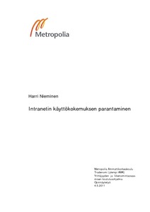 Tämän opinnäytetyön tarkoituksena oli parantaa yrityksen intranetin käyttäjien käyttökokemusta. Lähtötilanteessa tytäryhtiön intranet oli yhdistetty osaksi koko ryhmän intranetiä ilman riittävää käyttäjien tarpeiden kartoittamista, teknisten mahdollisuuksien ja rajoitusten selvittämistä ja kattavaa tiedottamista. Intranet oli määritelty asiakasrajapinnassa työskentelevien toimihenkilöiden pääasialliseksi tiedon lähteeksi, mutta muutoksesta johtuen tiedon löytyminen koettiin lähtötilanteessa haastavaksi.