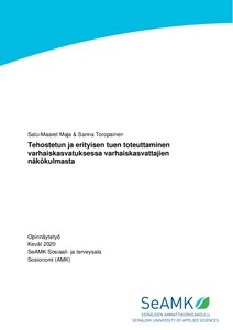 Opinnäytetyön tarkoituksena on tutkia tehostetun ja erityisen tuen toteuttamisen kokonaisuutta varhaiskasvatuksessa. Opinnäytetyön yhteistyötahona on Seinäjoen kaupungin kahden päiväkodin eri ikäisten lasten ryhmien varhaiskasvattajia.