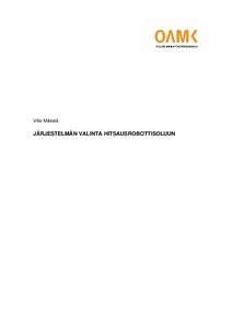 Tämä opinnäytetyö tehtiin osana projektia, jonka aihe oli hitsausrobottisolun suunnittelu tilaajalle Scanfil Oyj:lle. Opinnäytetyössä tehtiin hitsausrobottisolun järjestelmän valinnan mahdollistava teknologiaselvitys ja tutkittiin yhteistoimintarobotin soveltuvuutta hitsaukseen.