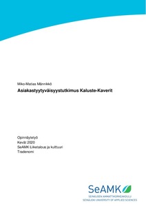 Opinnäytetyön tarkoituksena oli tutkia asiakkaiden tyytyväisyyttä Kaluste-Kaverien toimintaan. Opinnäytetyön ensimmäisenä tavoitteena oli perehtyä yrityksen asiakaspalveluun. Opinnäytetyön toisena tavoitteena oli perehtyä asiakastyytyväisyyteen ja siihen vaikuttaviin tekijöihin sekä asiakastyytyväisyyden tutkimiseen. Opinnäytetyön kolmantena tavoitteena oli suorittaa Kaluste-Kaverien asiakkaille asiakastyytyväisyystutkimus ja tutkimuksesta saatujen tulosten perusteella pohtia, millä tavoin asiakkaidentyytyväisyyttä voitaisiin kehittää jatkossa.