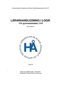 Föreliggande arbete är en handledning för läraren i kursen logik på gymnasialstadiet för första års studerande. Innehåller metoder för hantering av klass med olika grundkunskaper och erfarenhet inom datateknologi och övriga didaktiska råd, utlärning av begrepp, ihopvävande av olika vinklingar till en helhet, och praktiska övningar. Områden som behandlas är binära tal, logiska grindar och sanningstabeller, premisser och slutsatser, och grundläggande principer om signalers existens eller icke, och hur de förhåller sig till logiska kretsar. Läraren har frihet att bestämma ordningsföljd av lektionerna, och huruvida prov skall avläggas av klassen, samt betoning på det ena eller andra området. Förslag för allt ges i handledningen, men läraren har friheten kvar. Dessutom uppmanas läraren att återkoppla till andra kurser och vardagslivet där lämpligt för att underlätta förståelsen av principerna hos de studerande.