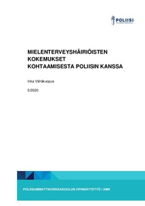 Tässä opinnäytetyössä on tutkittu mielenterveyden häiriöiden vaikutusten alaisten ihmisten kokemuksia kohtaamisista poliisin kanssa. Tutkimuksessa pyrittiin selvittämään, millainen on ollut kokemus kohtaamisesta poliisin kanssa sekä mitkä tekijät kohtaamistilanteessa ovat vaikuttaneet. Lisäksi haluttiin selvittää, mihin asioihin asiakkaat kiinnittivät kohtaamistilanteessa huomiota, millaisia tuntemuksia heille kohtaamisen aikana heräsi sekä mitä elementtejä ja asioita he toivoivat jatkossa poliisin huomioivan paremmin.