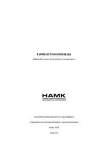 Tämän opinnäytetyön tavoitteena oli tutkia esimiestyötä muutoksessa, sen tuomia haasteita ja sitä, mitkä tekijät ovat auttaneet esimiehiä uuden roolin omaksumisessa. Muutoksella tässä opinnäytetyössä tarkoitetaan nousemista omasta tiimistä esimiesasemaan ja esimieheyden ensi askeleita. Opinnäytetyön tietoperustana tarkasteltiin esimiestyöhön ja johtamiseen liittyvää kirjallisuutta ja aikaisempia tutkimuksia.