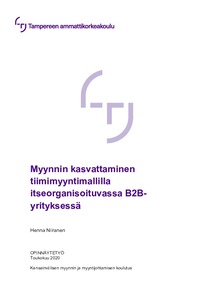 Työn teoreettinen pohja perustuu modernin B2B-myynnin teoriaan ja ostokäyttäytymisen muutokseen. Yrityskulttuuri määrittelee, miten myyntiä johdetaan ja kehitetään. Yrityskulttuuri voi toimia myös myyntitilanteessa positiivisena erottautumistekijänä. Työssä käsitellään tämän takia myös itseohjautuvuuden ja -organisoitumisen teorioita. Työssä käytetty tutkimusmenetelmä on konstruktiivinen tutkimus.