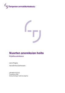 Opinnäytetyön tarkoituksena oli tehdä kuvaileva kirjallisuuskatsaus nuorten anoreksian hoidosta. Tavoitteena oli koota yhteen tieto siitä, miten nuorten anoreksiaa hoidetaan sairaanhoitajan työn tueksi. Opinnäytetyön tehtävänä oli, miten nuorten anoreksiaa hoidetaan. Opinnäytetyö toteutettiin kuvailevana kirjallisuuskatsauksena. Aineistoa haettiin kansainvälisistä ja kotimaisista tietokannoista käyttäen sisäänotto- ja poissulkukriteereitä. Aineistoon ei otettu yli 10 vuotta vanhoja tutkimuksia. Aineisto analysoitiin aineistolähtöisellä sisällönanalyysilla. Analyysissä aineisto pelkistettiin ja ryhmiteltiin ala- ja yläluokkiin. Yläluokista tehtiin tulosten selkeyttämiseksi otsikot.