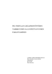 PE2-tehtaan lisäainesyöttöjen tarkkuuden ja luotettavuuden parantaminen