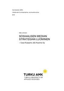 Työn lopputuloksena syntyi toimeksiantajalle sosiaalisen median strategia sekä julkaisukalenteri. Molempiin tuotoksiin sisältyi konkreettisia julkaisuehdotuksia. Toimeksiantaja oli tyytyväinen sekä strategian sisältöön että julkaisuehdotuksiin. Valitettavasti strategian testaus jäi toteuttamatta toimeksiantajan työkiireiden vuoksi. Työn suunnittelu aloitettiin syksyllä 2019, ja strategia sekä julkaisukalenteri valmistuivat aikataulun mukaisesti joulukuussa 2019. The social media strategy tells what the company is aiming for using social media and how to achieve these goals. The aim of this thesis was to create a social media strategy for Korjaamo J&J Kaarina Oy, which would increase the company´s awareness and engage their social media followers. The intention was also to test the strategy by executing the posts according to the social media content calendar included in it. The client had previously been an active user of social media, and the goal of the work was to help them produce more planned content.