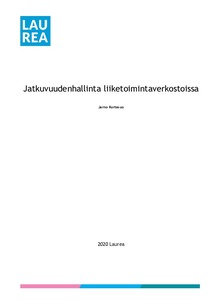 Tämän opinnäytetyön tavoitteena oli tutkia liiketoiminnan jatkuvuutta ja toimintavarmuutta nykymuotoisissa liiketoimintaverkostoissa. Tarkoituksena oli selvittää verkostomaisen toimintaympäristön erityispiirteitä jatkuvuudenhallinnan näkökulmasta ja nostaa esiin mahdollisia hyviä käytäntöjä ja toimintatapoja aihepiiriin liittyen.