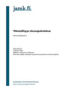 Opinnäytteen tarkoitus oli tutkia yhteisöllisyyttä siivouspalveluyrityksessä. Työ tehtiin työssä havaittuna tarpeena erään siivouspalveluyrityksen esimiehen alueelle Jyväskylässä. Tarkoituksena oli saada ymmärrys yhteisöllisyyden nykytilasta kyseisessä työyhteisössä sekä sen merkityksestä palveluvastaajille. Tutkimusogelmana oli selvittää, voiko yhteisöllisyyttä syntyä työyhteisössä, jossa sen jäsenet työskentelevät fyysisesti eri paikoissa. Tutkimuskysymykset olivat, onko työyhteisössä yhteisöllisyyttä ja onko yhteisöllisyydellä merkitystä työntekijöille.