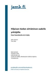 Tutkimusten perusteella huomattiin, että tietoa ei ole juurikaan pyritty siirtämään uudelle yrittäjälle, vaan uusi yrittäjä on joutunut aloittamaan koko oppimisprosessin alusta. Näiden tuloksien pohjalta alettiin kehittämään toimintamalleja ja dokumentteja, joilla toimeksian- taja yritys pystyy mahdollisimman tehokkaasti siirtämään jo olemassa olevan tiedon uuden yrittäjän käyttöön. Toimeksiantaja yrityksellä on myös paljon hiljaista tietoa, joka ei ole siir- rettävissä visuaalisin tai verbaalisin keinoin. Tällaisen tiedon siirtämistä varten on luotu toi- mintamalleja teoriaa hyväksi käyttäen, jotta uusi yrittäjä, joka liiketoiminnan vuokraa pää- see mahdollisimman nopeasti alkuun ja omaksuu saunalauttaan liittyvän tiedon ja käytän- teet.