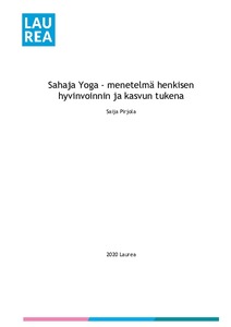 Etsin opinnäytetyöni avulla vastauksia, miten Sahaja Yogan säännöllinen harjoittaminen vaikuttaa haastateltavien henkiseen hyvinvointiin, arkeen ja ihmissuhteisiin. Aineistoa keräsin kahdeksalta Sahaja Yogaa harjoittaneelta ihmiseltä puolistrukturoidun teemahaastattelun avulla. Haastateltavat tavoitettiin Sahaja Yogaa harjoittavien ryhmästä. Haastateltaviksi valikoitui eri-ikäisiä ihmisiä, joilla oli vähintään kymmenen vuoden kokemus Sahaja Yogasta. Aineisto analysoitiin aineistolähtöisen sisällönanalyysin avulla.