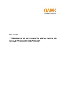 Opinnäytetyön aiheena oli rakennushankkeen kustannusten ja työmenekkien vertaileminen käyttäen apuna yrityksen tavoitelaskelmia ja viiteaineistoa. Vertailtavat rakennusosat olivat teräsbetonirunko elementteineen, puurunko ja kipsiväliseinät. Talvitöiden lisät, telineet ja betonipintojen jälkityöt olivat myös tarkastelussa mukana niiltä osin, kuin ne kuhunkin työvaiheeseen kuuluivat.