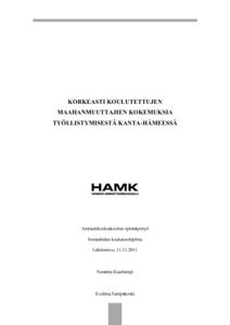 Korkeasti koulutettujen maahanmuuttajien kokemuksia työllistymisestä Kanta-Hämeessä