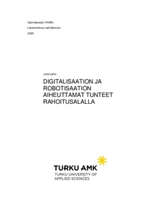 Työn tavoitteena oli tutkia, millaisia tunteita digitalisaation ja robotisaation lisääntyminen rahoitusalalla työskentelevissä toimihenkilöissä aiheuttaa. Lisäksi haluttiin selvittää miksi erilaisia tunteita koetaan sekä miten erilaisiin tunteisiin digitalisaatiota ja robotisaatiota kohtaan voitaisiin vaikuttaa.