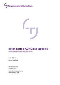 Opinnäytetyön tarkoituksena oli tuottaa Pirkanmaan sairaanhoitopiirin Lasten neuropsykiatrian yksikölle opetusmateriaali ADHD:sta alakouluikäisille lapsille, joiden sisaruksella tai luokkalaisella on diagnosoitu ADHD. Opinnäytetyön tehtävänä oli selvittää, minkälaisia erityispiirteitä on ADHD:ta sairastavalla alakouluikäisellä ja millainen on 7–12-vuotiaan normaali kognitiivinen kehitys. Opinnäytetyön tavoitteena oli opetusmateriaalin avulla lisätä tietoa ja ymmärrystä ADHD:n erityispiirteistä ja niiden ilmenemisestä. Opinnäytetyö toteutettiin toiminnallista menetelmää käyttäen.
