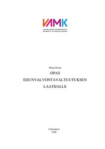 Edunvalvontavaltuutuksen laatimisessa täytyy kiinnittää huomiota valtakirjan ja sen sisällön tekoon. Valtakirja sisältää muotovaatimuksia, jotka on hyvä tietää etukäteen, jotta valtuutusta vahvistaessa se saataisiin voimaan. In this thesis was examined composing a continuing power of attorney document because its drafting is foreign to many citizens, especially the aging population. The objective of the bachelor’s thesis is to advise and assist the person making the authorization by providing extensive guidance on how to prepare a power of attorney document to confirm the authorization.