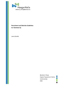 Viaminnet Oy. This Bachelor’s thesis is a project-based study. The primary objective of this study was to establish recruitment and selection guidelines for Viaminnet Oy. The importance of the candidate experience during the recruitment and selection process was enhanced. The international aspect of the recruitment and selection process was also taken into consideration to prove that the guidelines were suitable for international recruitments.