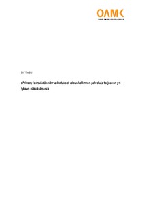 Tässä opinnäytetyössä tarkastellaan Euroopan komission ehdotusta sähköisen viestinnän tietosuoja-asetukseksi ja sen vaikutuksia taloushallintoalan yrityksen näkökulmasta. Aihe on ajankohtainen, sillä asetusta alettiin valmistelemaan pian yleisen tietosuoja-asetuksen voimaan tulon jälkeen.