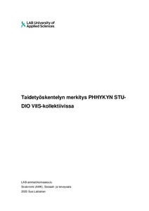 Tutkimusmenetelmänä käytettiin laadullista tutkimusta ja sisällönanalyysiä. Aineisto kerättiin teemahaastatteluilla. Aineistosta nousi esiin useita hyvinvointivaikutuksia. Se koettiin itsevarmuutta lisäävänä, osallisuutta edistävänä, syrjäytymistä ehkäisevänä, omaehtoisena toimintana, jossa on vapaus toteuttaa itseään taiteilijana. Yhteisö koettiin voimauttavana. Samaan aikaan aineistosta nousi myös haasteita esiin, kuten pettymyksen tunteita, kun omat taideteokset eivät myy. Kysyttiin kuinka markkinoida, jotta teokset menisivät kaupaksi. Jatkokehityksen näkökulmasta voitaisiin pohtia, miten nostaa erityistaide yhdenvertaiseksi kaiken muun taiteen rinnalle. In Finland, artists in special art activities have had a relatively short time to work in their profession on their own in a community that meets the standards of an art studio. It was desired to explore the importance of artwork in PHHYKY's Studio VIIS collective. The purpose was to promote awareness of why art activities are relevant to the specific need for support of artists and why arts activities are influential, for example, in terms of well-being. An important point of view was also to highlight the employing influence of art and the artist's effort to make a living out of it.