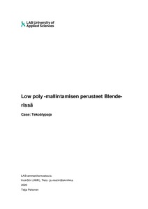 Opinnäytetyön tarkoituksena oli tehdä low poly -malleja Tekoälypajan VR-peliprojektiin. Tekoälypaja on tekoälyn tutkimiseen ja kehittämiseen liittyvä työpaja, jonka tavoitteena on edistää terveyden ja hyvinvoinnin sekä kiertotalousalan pk-yrityksille sensori- ja tekoälyteknologian avulla (LAB University of Applied Sciences).